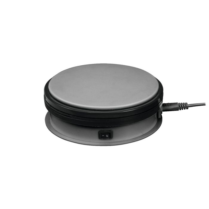Elektrische Drehscheibe für Gegenstände mit einem Gewicht bis 5kg und einer Umdrehungsgeschwindigkeit von ca. 2,4 Umdrehungen / Minute. Mit diesem rotierenden Teller können Sie Verkaufsaktionen in Ihrem Schaufenster in Szene setzen oder Produkte von allen Seiten präsentieren beispielsweise für Fotoshootings und Produktvideos.