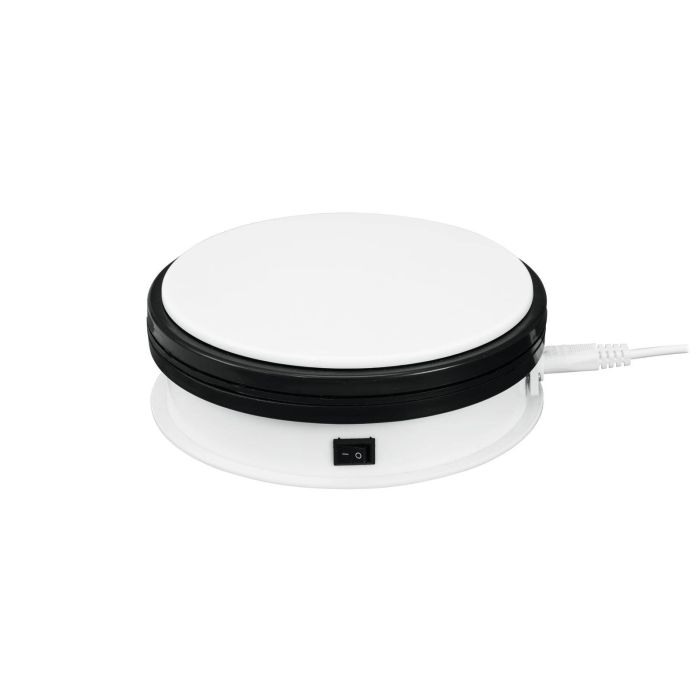 Elektrischer Drehteller für Gegenstände mit einem Gewicht bis 5kg und einer Umdrehungsgeschwindigkeit von ca. 2,4 Umdrehungen / Minute. Mit diesem rotierenden Teller können Sie Verkaufsaktionen in Ihrem Schaufenster in Szene setzen oder Produkte von allen Seiten präsentieren beispielsweise für Fotoshootings und Produktvideos.