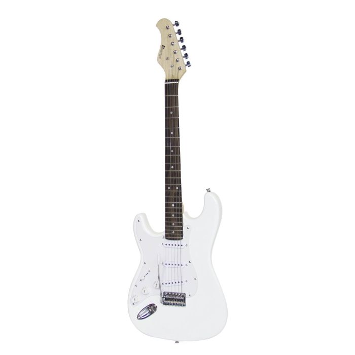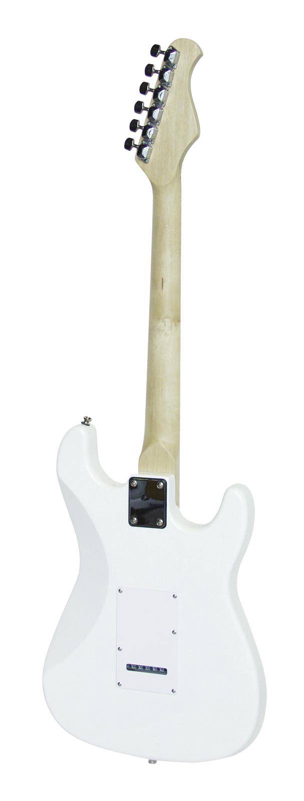 Die elektrische Gitarre PATRON von klangbeisser für Linkshänder in Weiß eignet sich perfekt als Anfänger Gitarre für Kinder, Jugendliche und auch erwachsene Neueinsteiger.