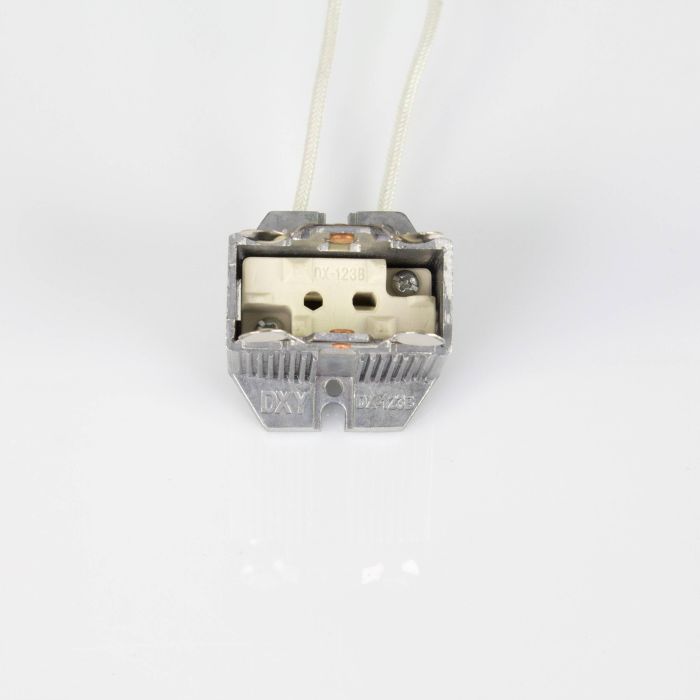 Fassung aus Keramik und Metal mit kurzem Kabel für Lampen beziehungsweise Leuchtmittel mit GY-9,5 sowie GX-9,5 Stiftsockel. Gut geeignet für Bastler, die ihre eigenen Lampen und Leuchten bauen möchten.