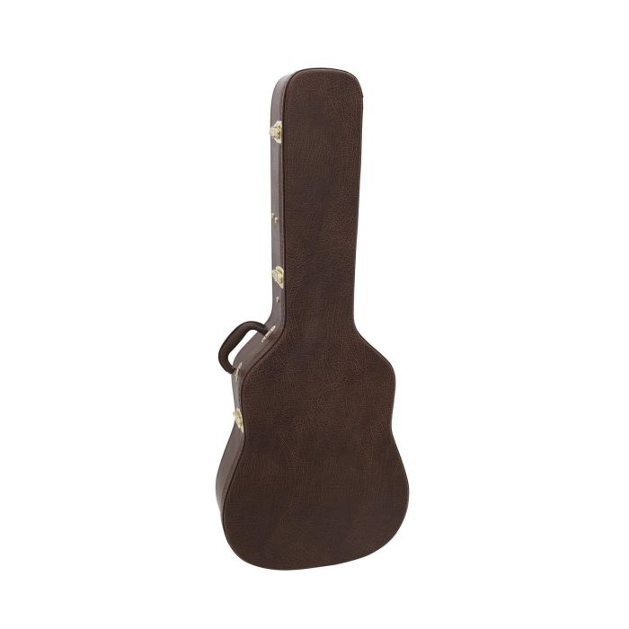 Transportkoffer mit edler Holzoptik von klangbeisser, zum sicheren Transport von Akustikgitarren. MIt praktischem Tragegriff zum einfachen hin und her tragen zwischen Proberaum und Bühne.