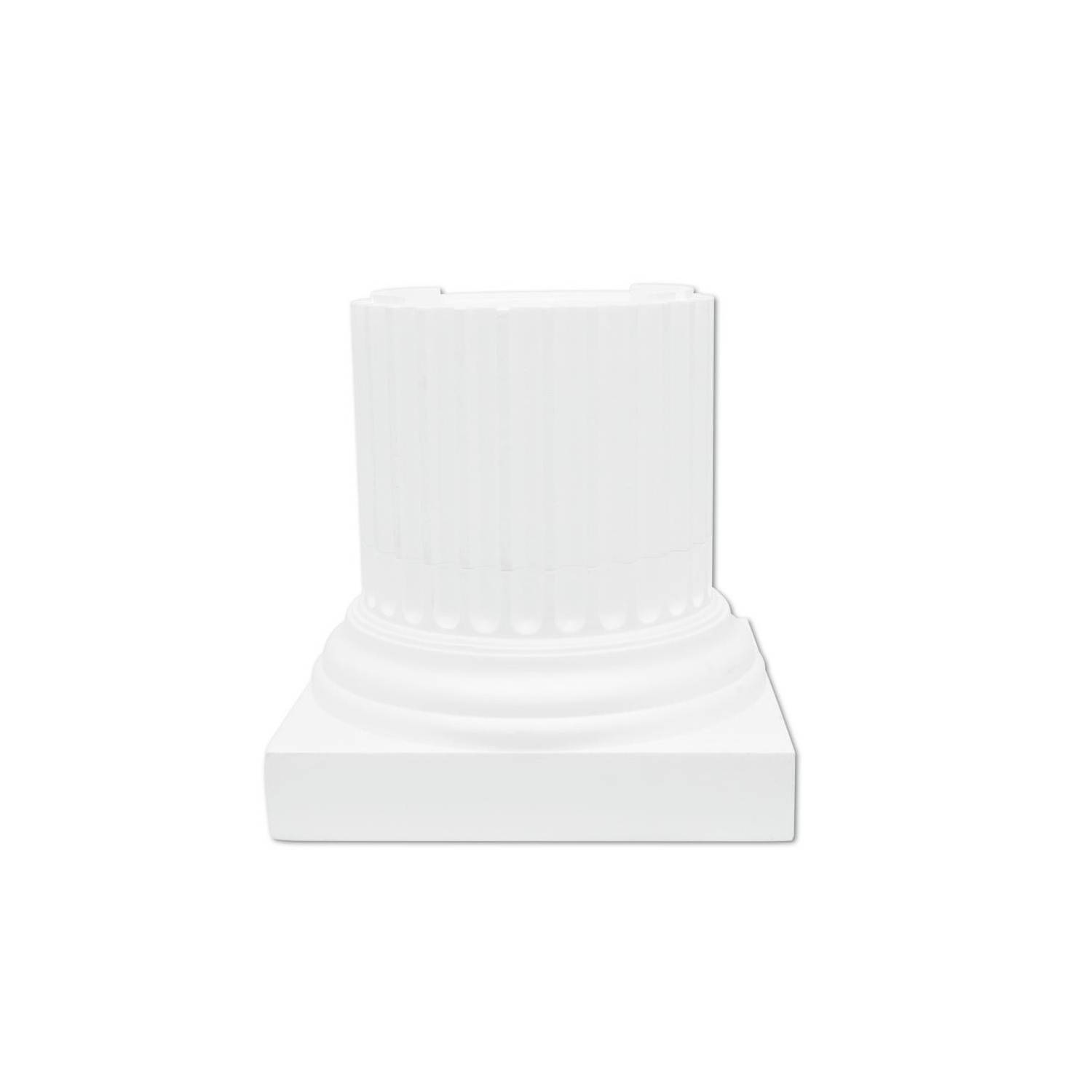 - Antike griechische Säule in der Farbe Weiß, viereckige Platte mit gemusterter Ringsäule