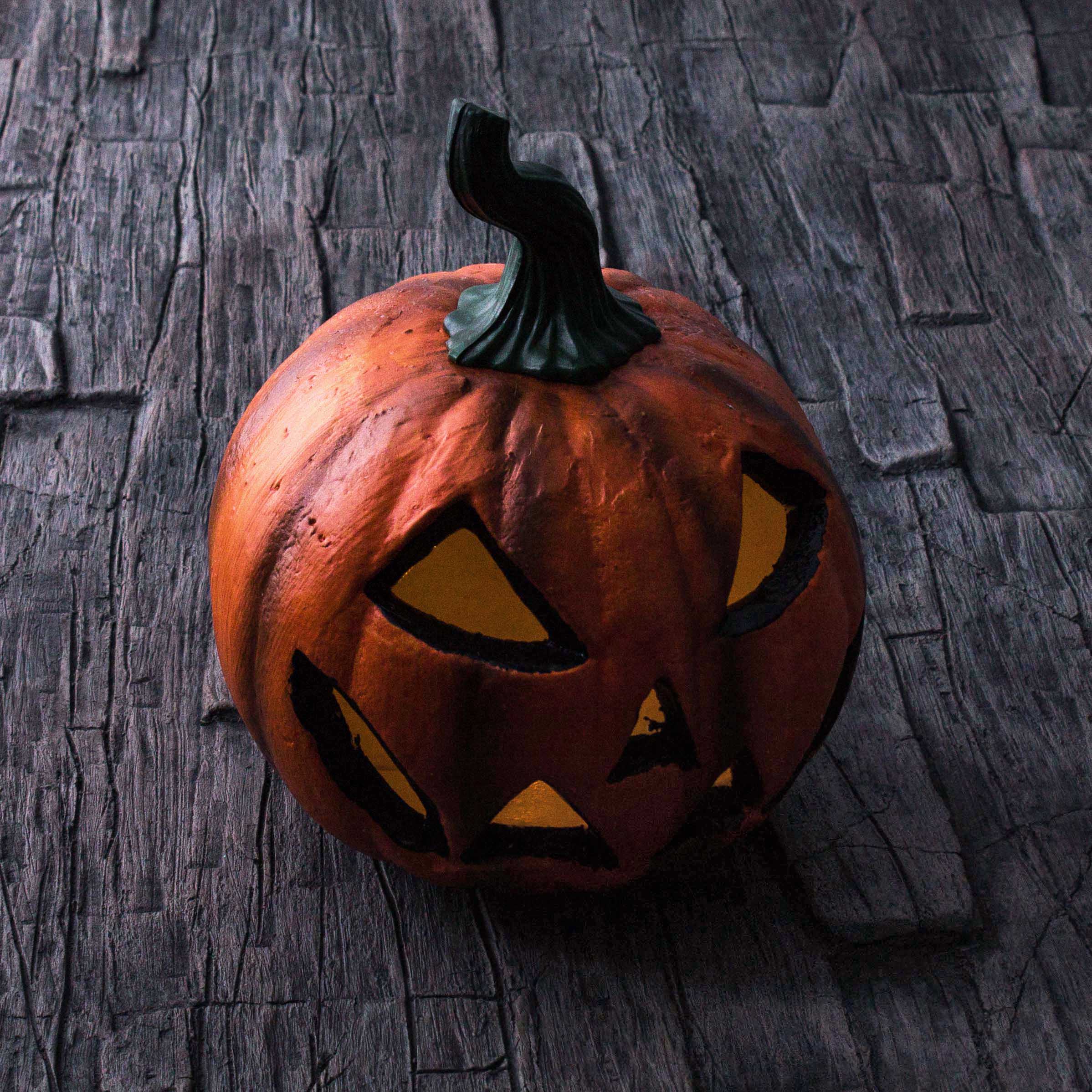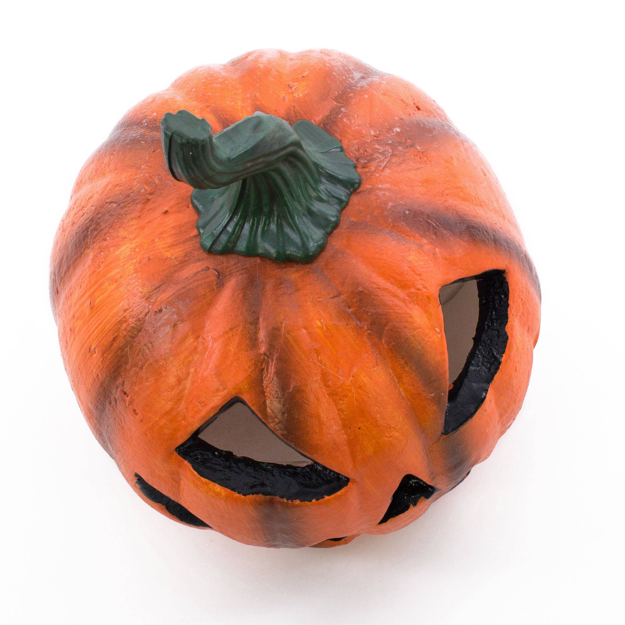 - Kürbis mit Gesichtsschnitzereien und Strunk aus Styropor