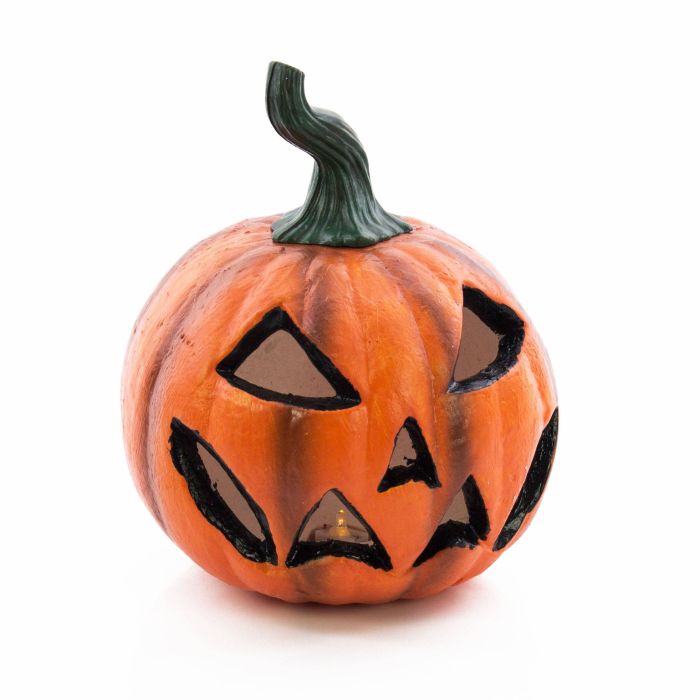 Halloween Kürbis TWIGGY mit Gesicht, orange, LED, Ø21cm