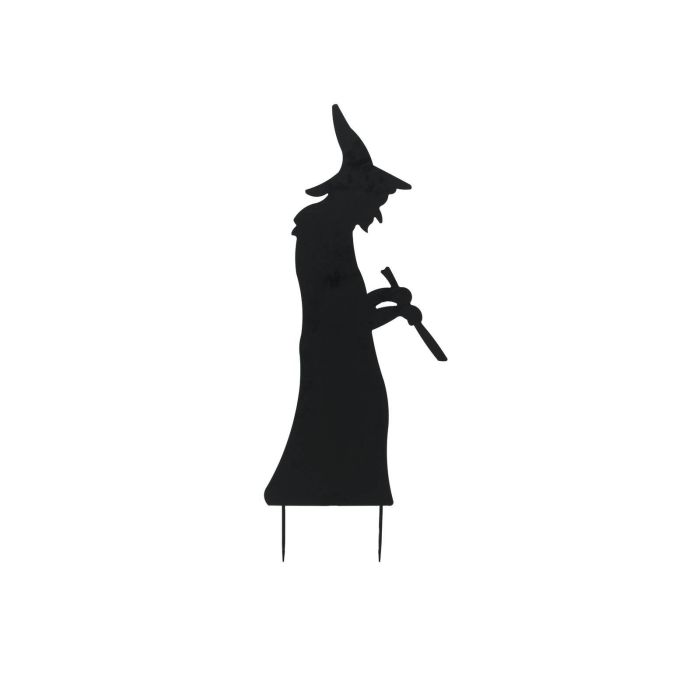 Schattenriss SPOOKY WITCH in Farbe Schwarz. Die Silhouette ist auf 2 Erdspießen befestigt und ist perfekt für die Gestaltung des Gartens an Halloween geeignet.