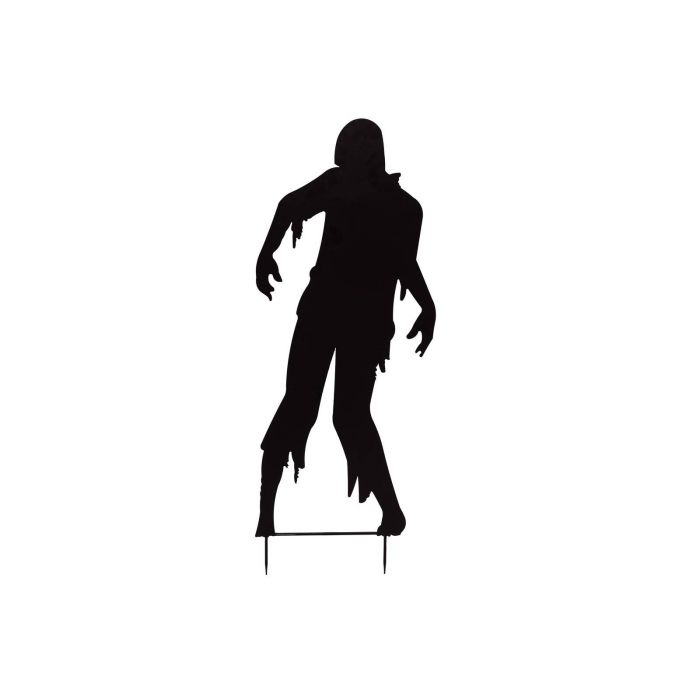 Schattenriss SPOOKY ZOMBIE in Farbe Schwarz. Die Silhouette ist auf 2 Erdspießen befestigt und ist perfekt für die Gestaltung des Gartens an Halloween geeignet.