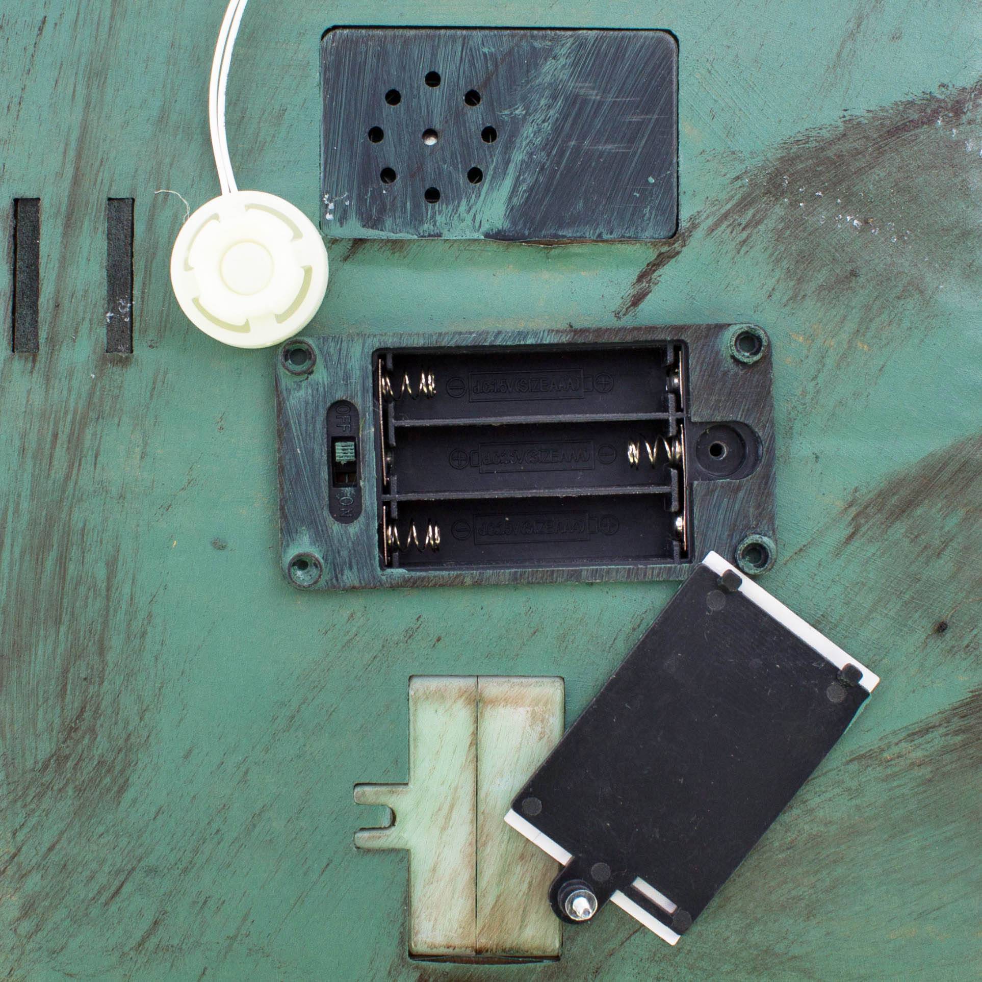 - Zum an die Wand hängen; Soundfunktion düstere Geräusche durch integrierte Lautsprecher und zitternde Stromleitungen als Bewegungsfunktion durch integrierten Motor