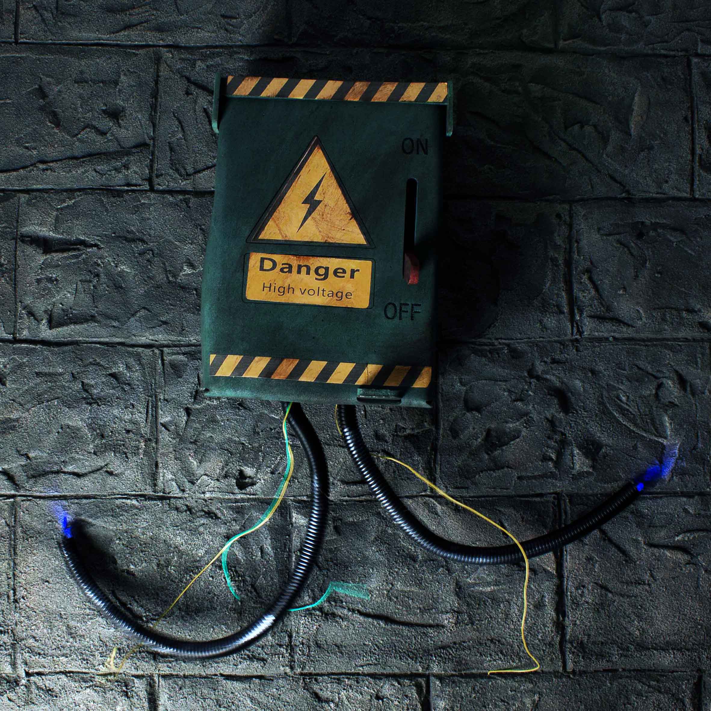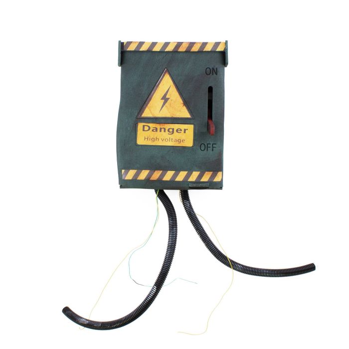 Schaltkasten DANGER mit beweglichen Leitungen und unheimlichen Geräuschen. Der Sicherungskasten Ist eine gelungene Abwechslung zwischen üblichen Halloween Dekorationen.