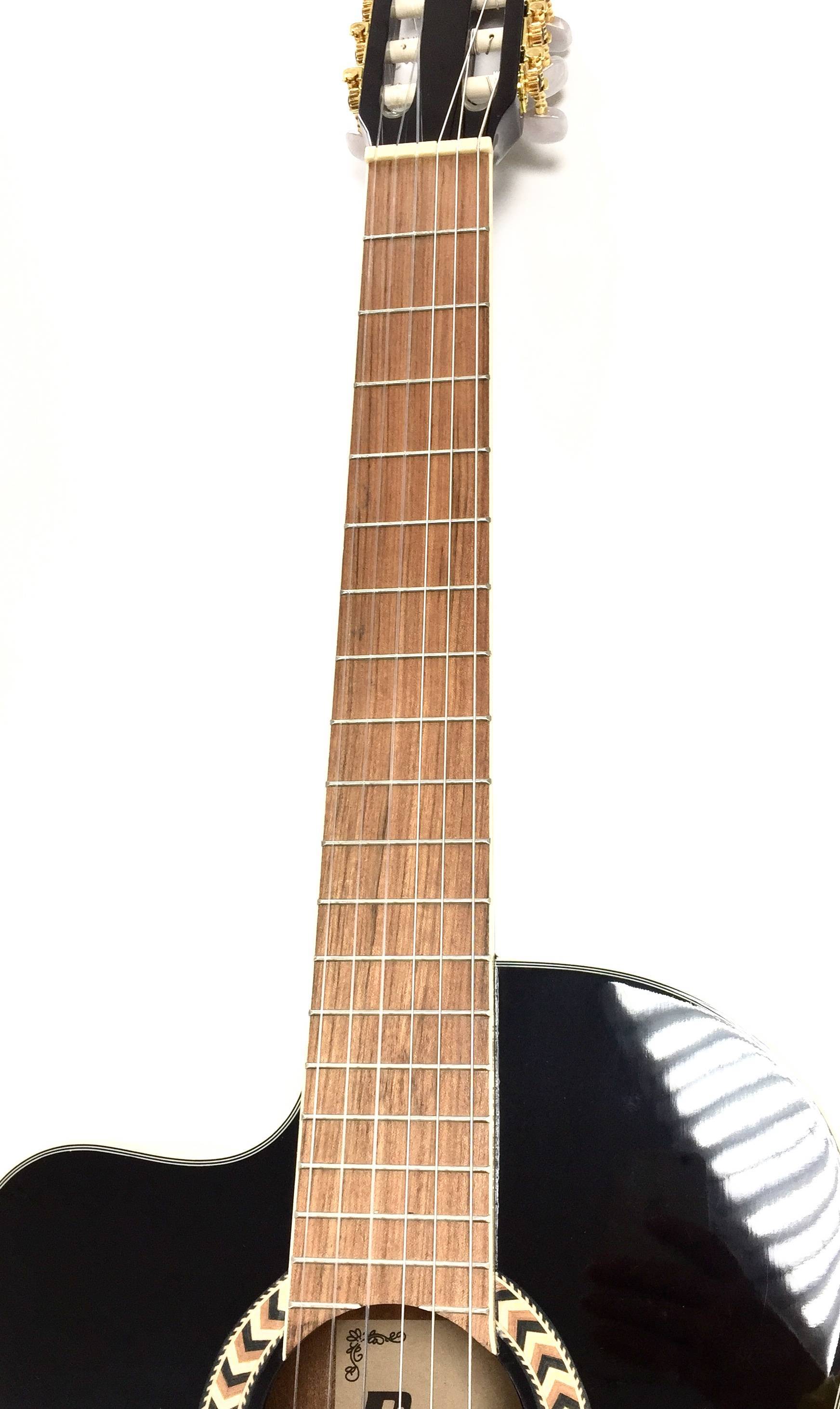 - Farbe: schwarz; Nylonsaiten; Linkshändergitarre