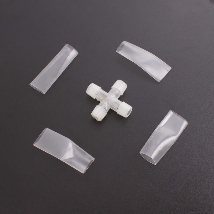 Verbindungskreuz für vier Lichtschläuche mit Schrumpfschläuchen und Verbindungszapfen. Verbindet Lichtschläuche in Form eines Kreuzes.