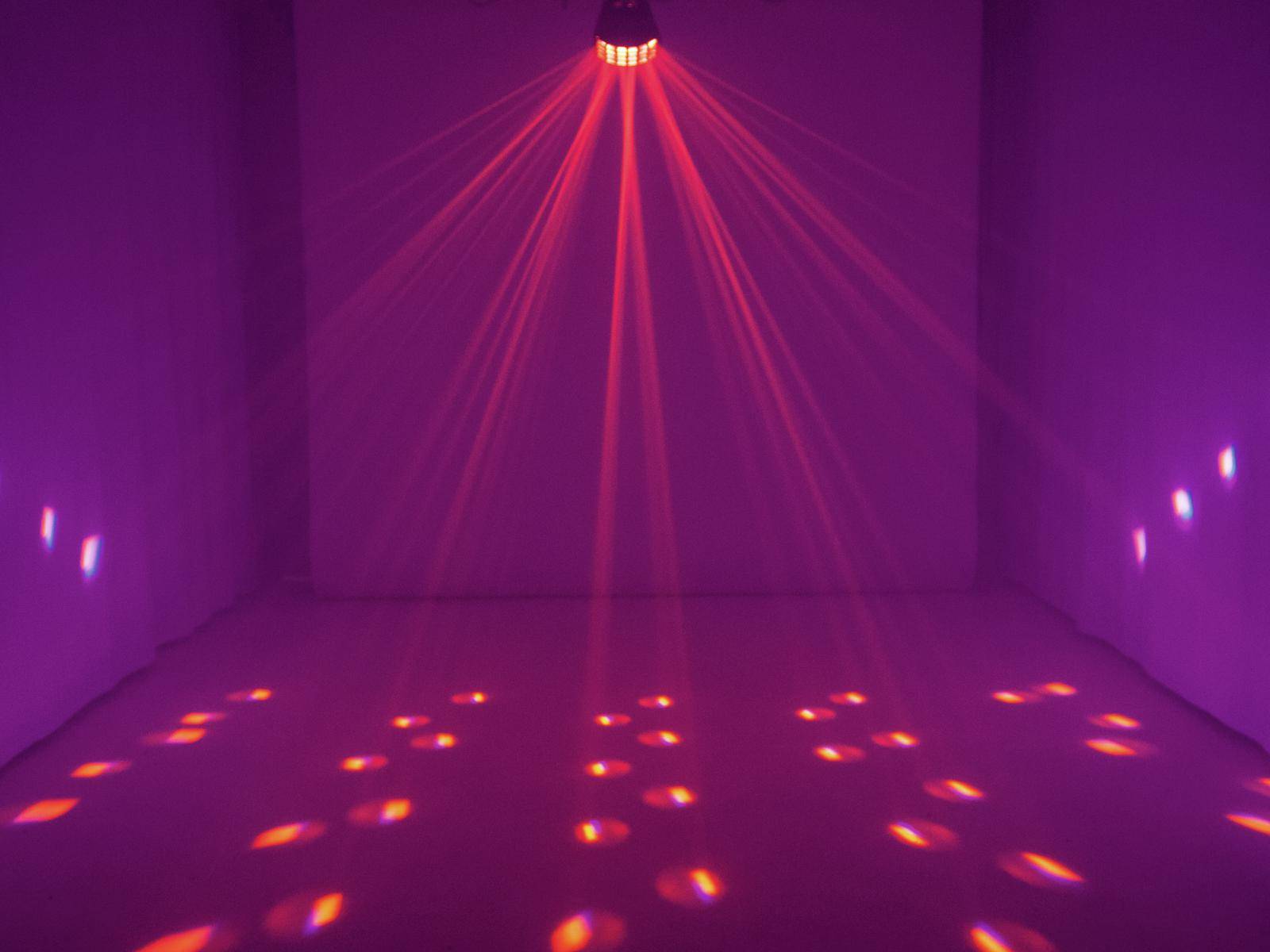 Dieser Disco Lichteffekt sorgt für viele verschiedenfarbige Lichtstrahlen und verleiht Ihrem Partykeller oder Ihrer Diskothek ein besonderes Flair.