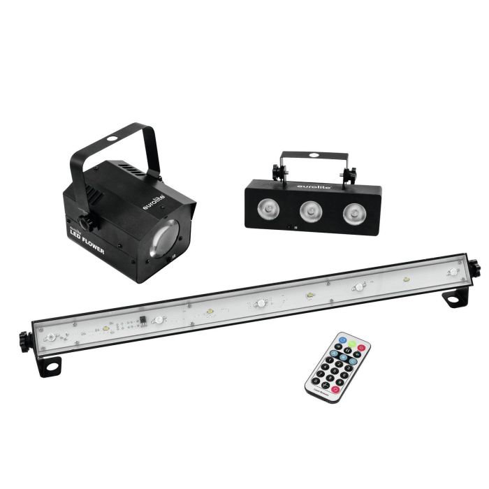 LED Effektbeleuchtung Partyset Flowereffekt & Washlight & UV+Stroboskop-Leiste / anschlussfertig / mit Fernbedienung