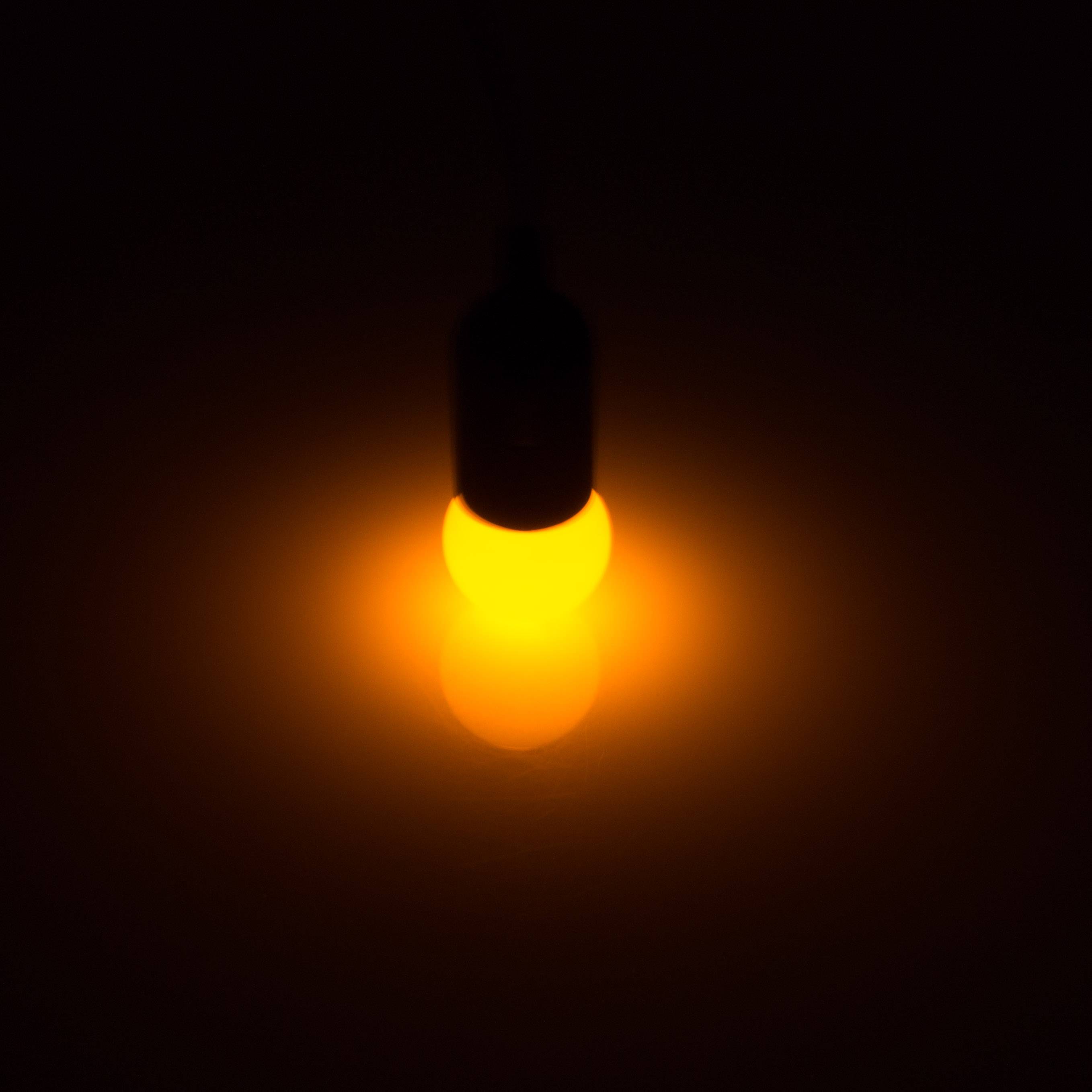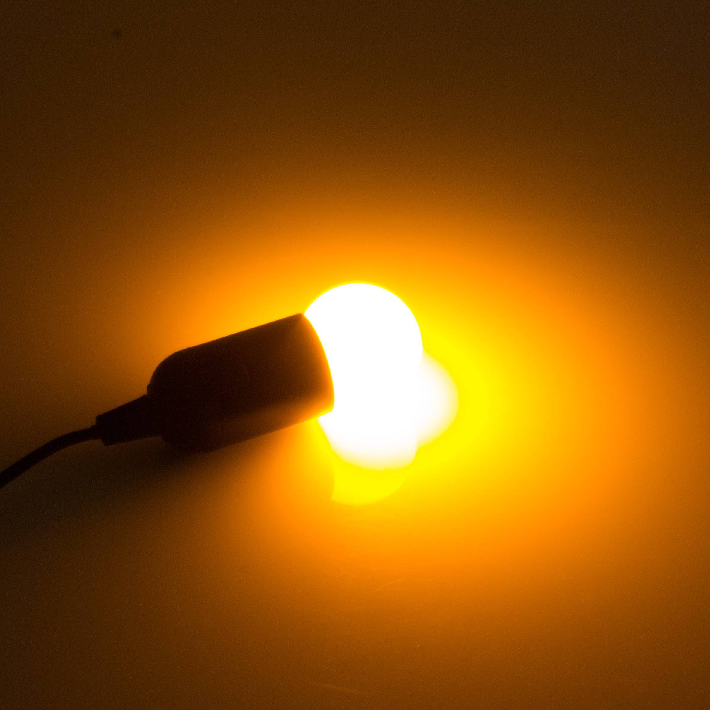 LED Leuchtmittel mit dem praktischen E-27 Schraubsockel für den schnellen Leuchtmitteltaustausch. Diese Lampe sorgt mit geringem Energieverbrauch für schönes oranges Licht und eignet sich besonders gut für Jugendräume, Kinderzimmer sowie Partyräume.