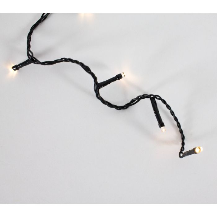 Batteriebetriebene LED Lichterkette mit 96 Lichtern und 7,1m Länge für den Innnenbereich und Außenbereich. Mit einem warm weiß Licht und einer Gesamtlänge (incl. 50cm Netzkabel) von 7,6m eignet sich diese Lichterkette für Orte an denen kein Strom vorhanden ist, beispielsweise im Garten, beim Zelten oder mobil am Fahrrad oder im Wohnmobil.