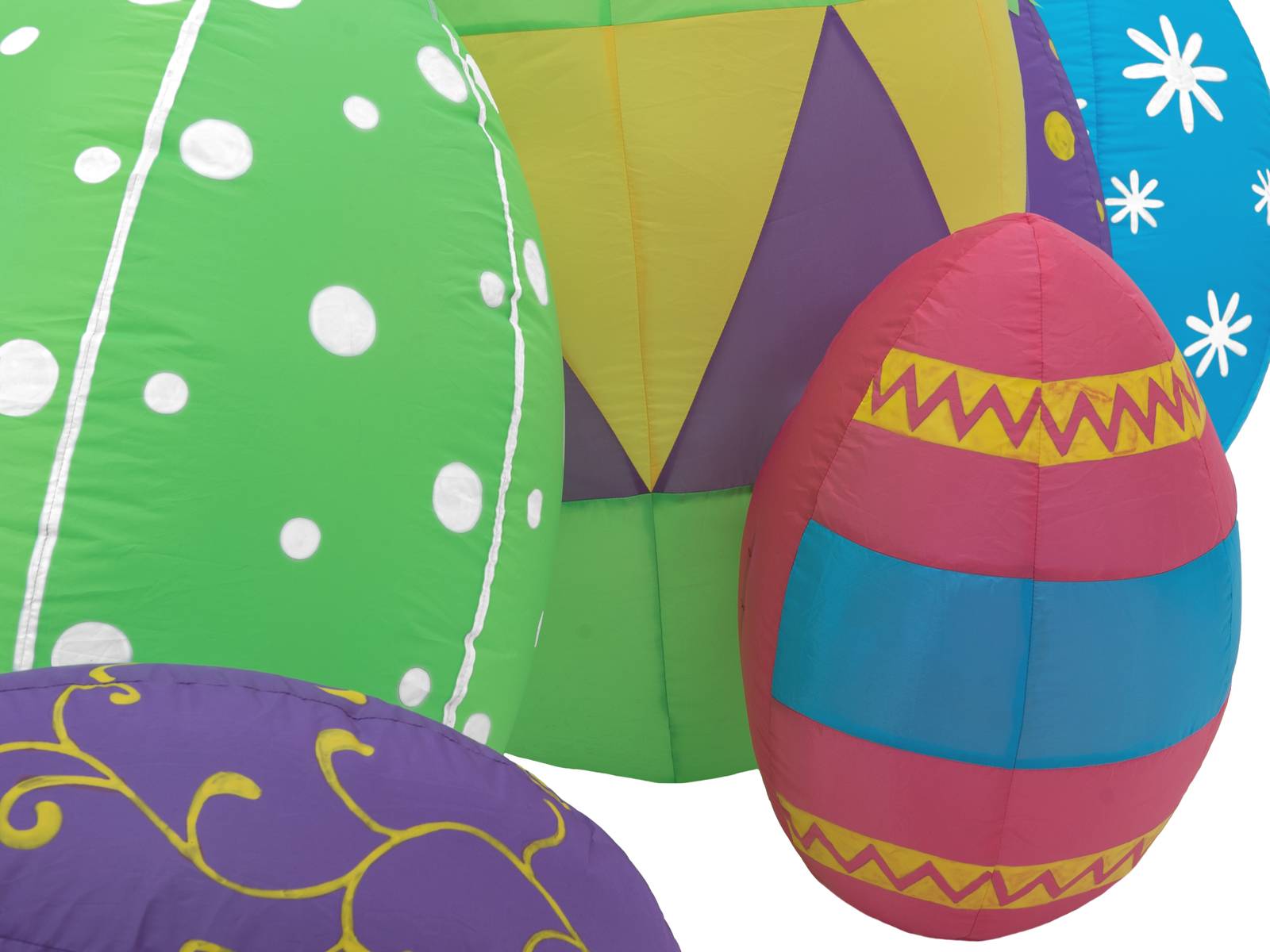 Die aufblasbaren Ostereier MADELINE ist durch eine eingebaute Pumpe schnell aufblasbar und platzsparend aufzubewahren. bunt