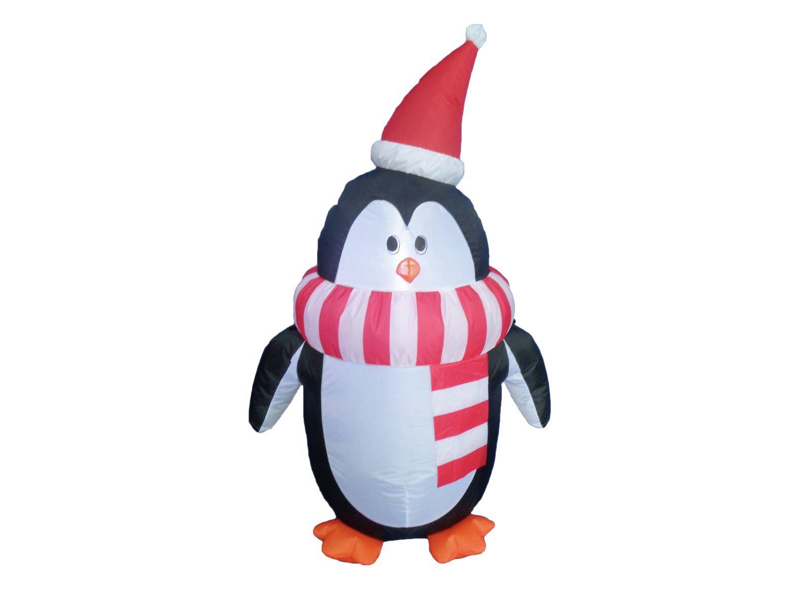 Pinguin FROSTI mit Schal und Weihnachtsmütze, aufblasbar, LED, 120cm