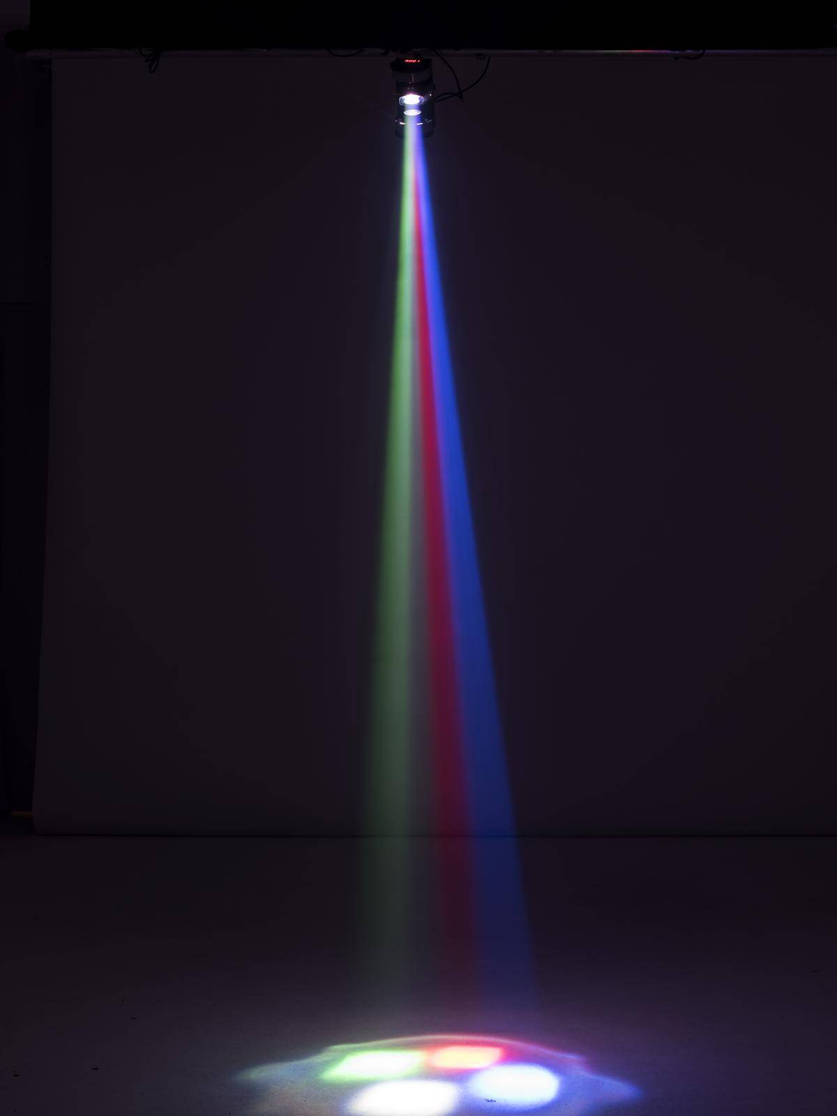 - Ausgestattet mit einer 15-W-COB-LED in den Farben Rot, Grün, Blau und Weiß