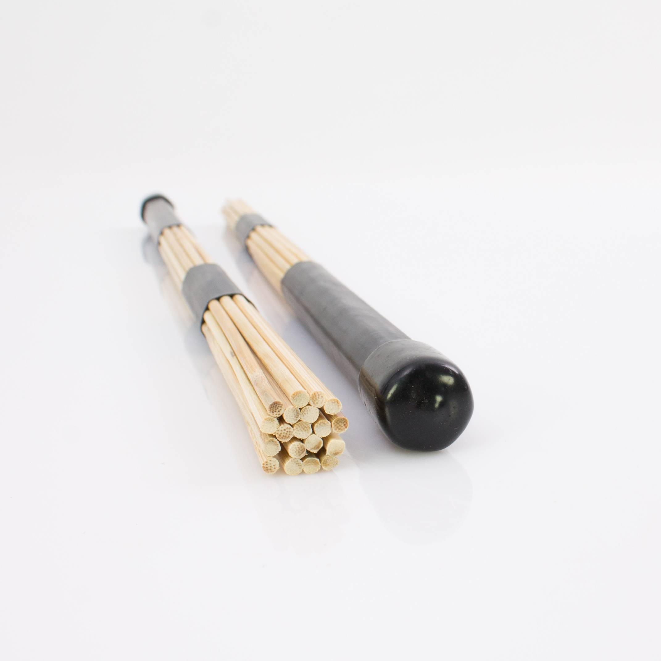 Die Rod Drumsticks LEYERS von klangbeisser sind im Klang wohl eine Mischung zwischen Besen und Sticks. Der Sound ist weicher als beim herkömmlichen Drumstick aber er hat im Gegensatz zum Besen einen Rebound. Den Klang kann man mit Auffächern der Enden noch beeinflussen.