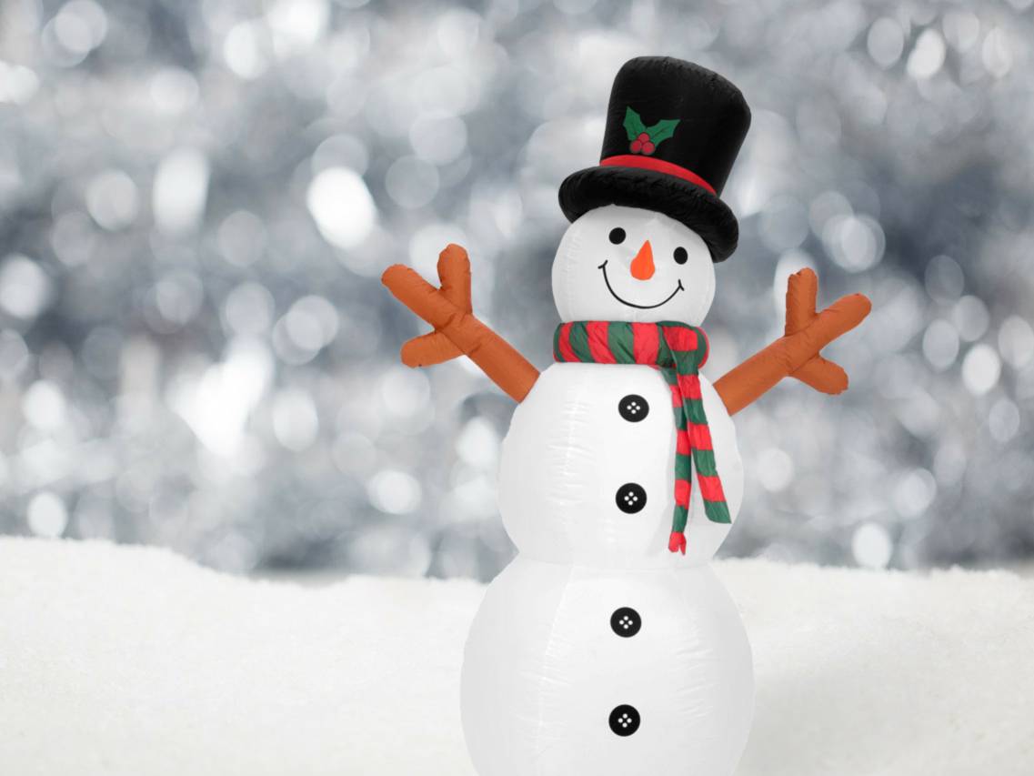Die aufblasbare Schneefigur OLAF ist durch eine eingebaute Pumpe schnell aufblasbar und platzsparend aufzubewahren. weiß