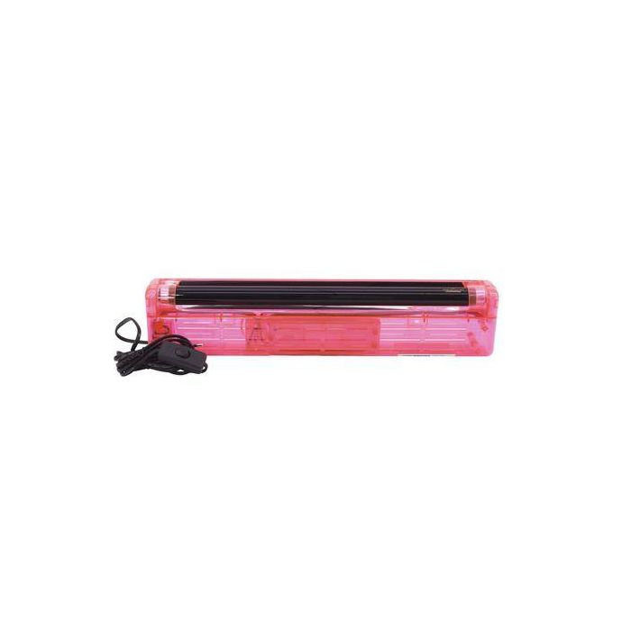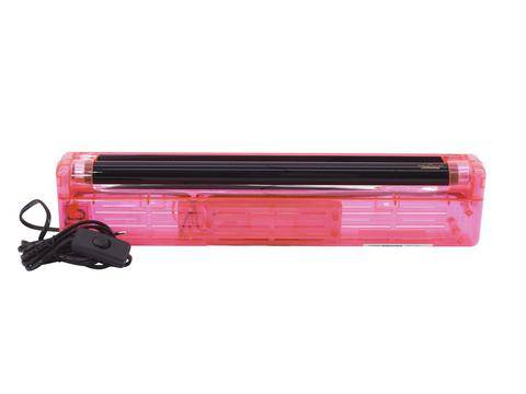 Schwarzlichtlampe, Set aus roter Halterung & UV-Röhre 230V / 15W, 45cm, Sockel G-13, T8 = Ø 26mm, anschlussfertig