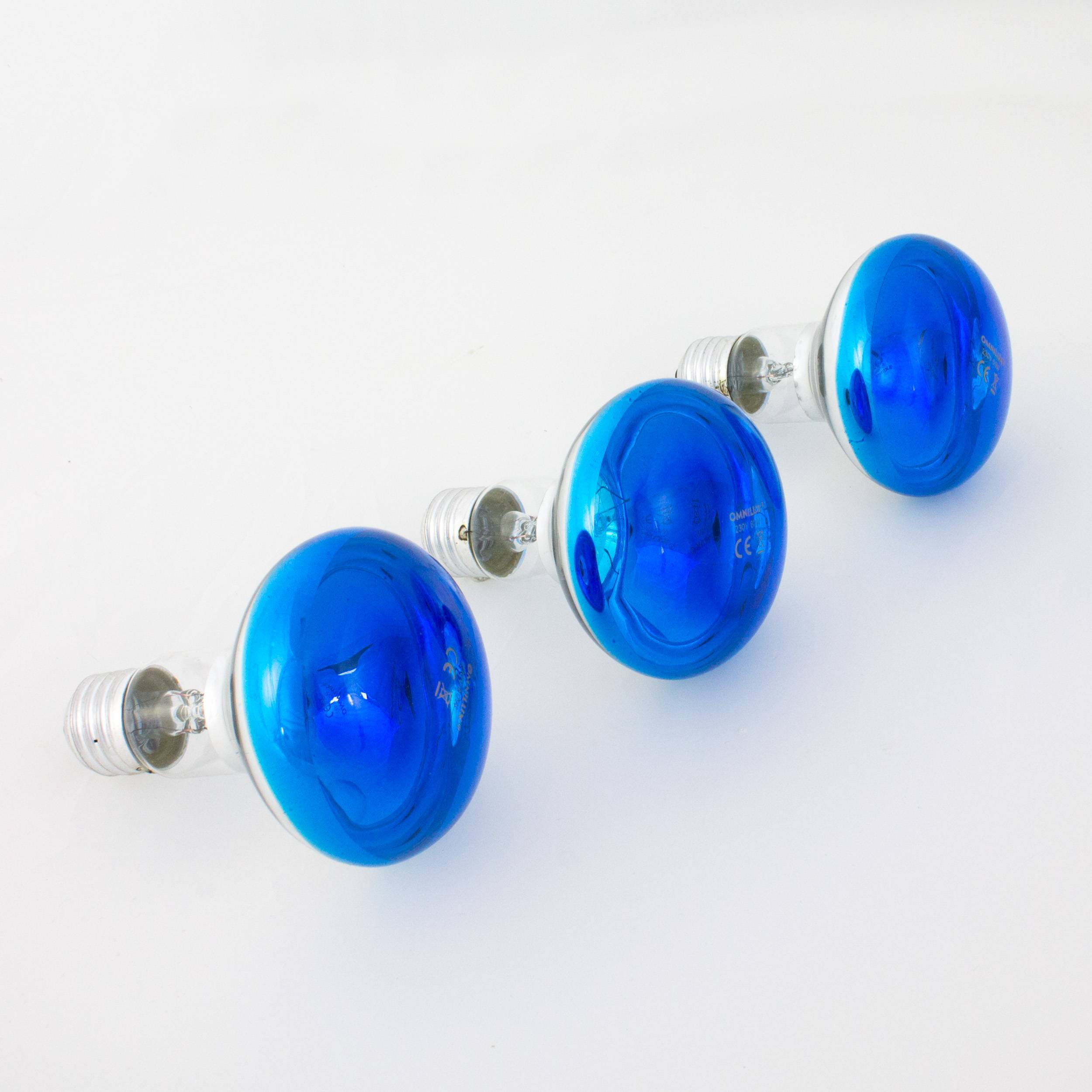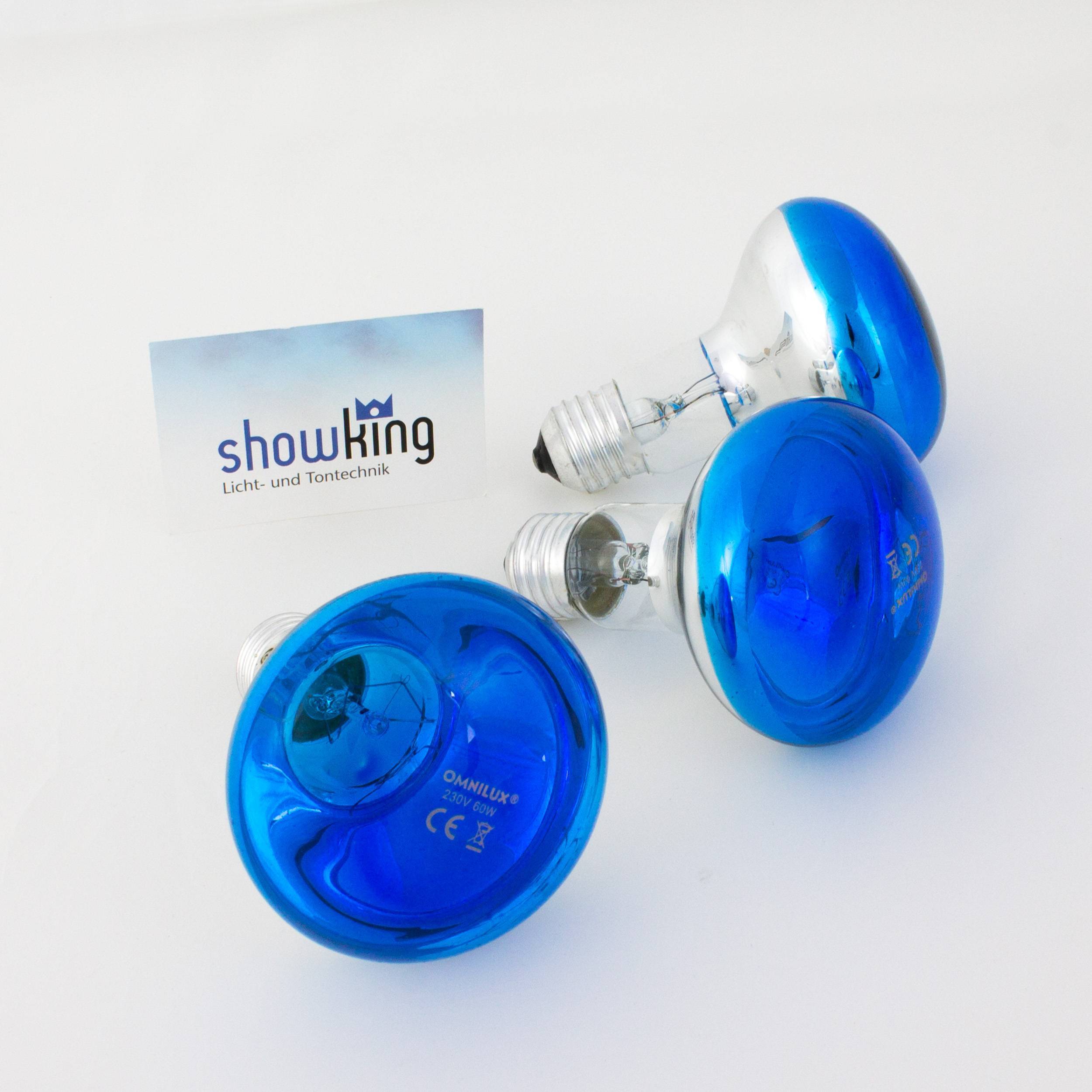 - 3 x Farbige Lampe R80 230V / 60W zur Partybeleuchtung, Sockel E-27, blau (SKU 11271)