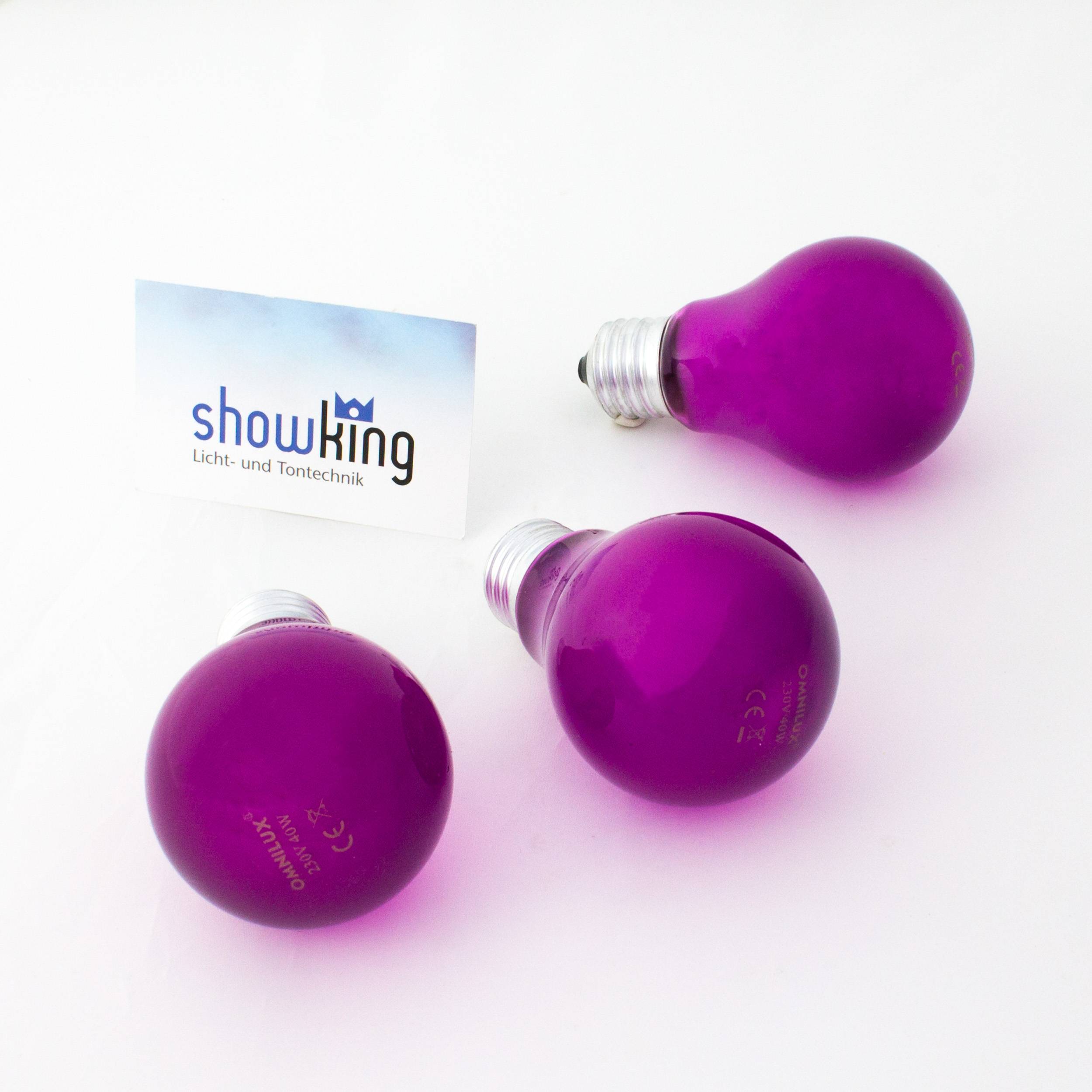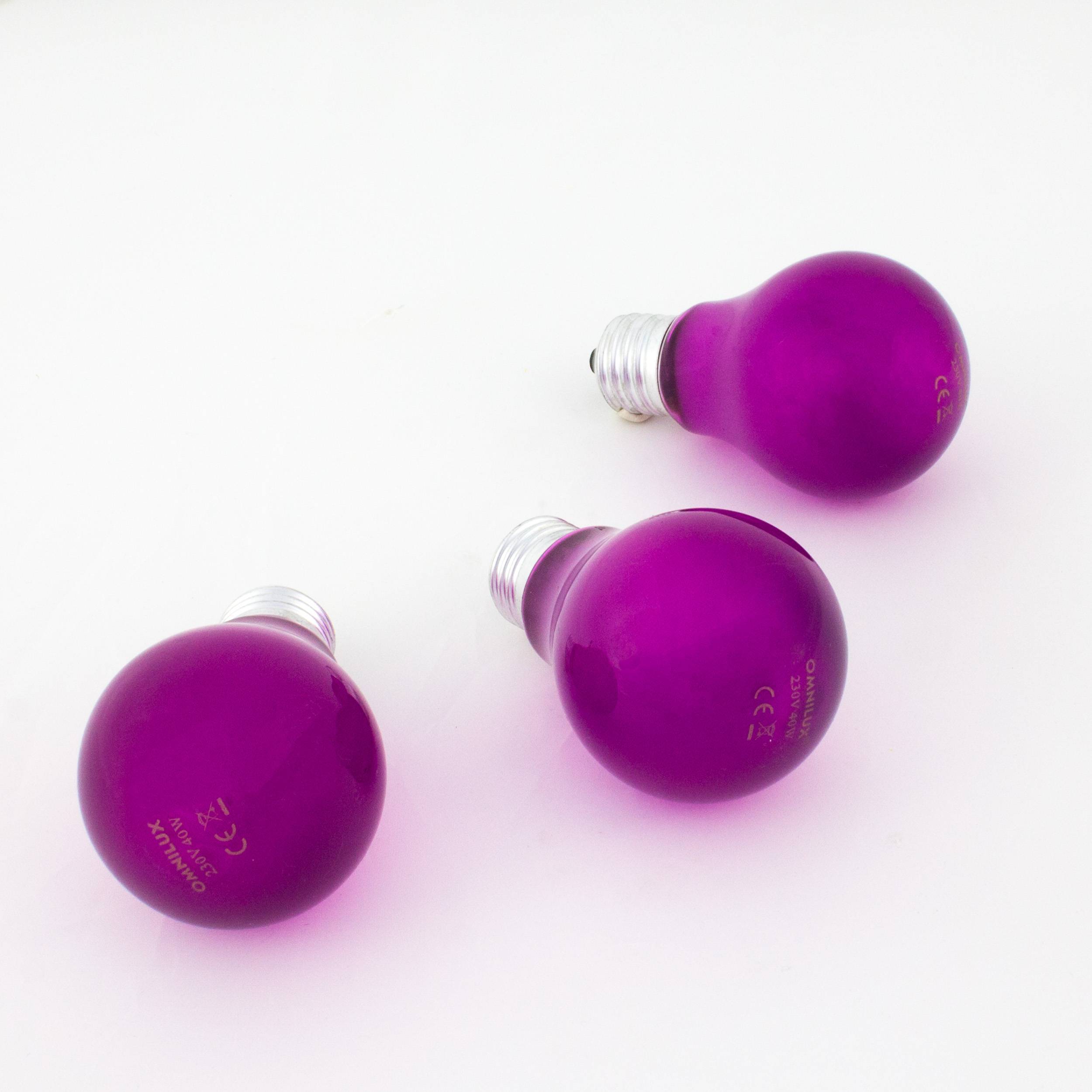 Set 3 x Farbleuchtmittel A19 230V / 40W zur Partybeleuchtung, Sockel E-27, violett