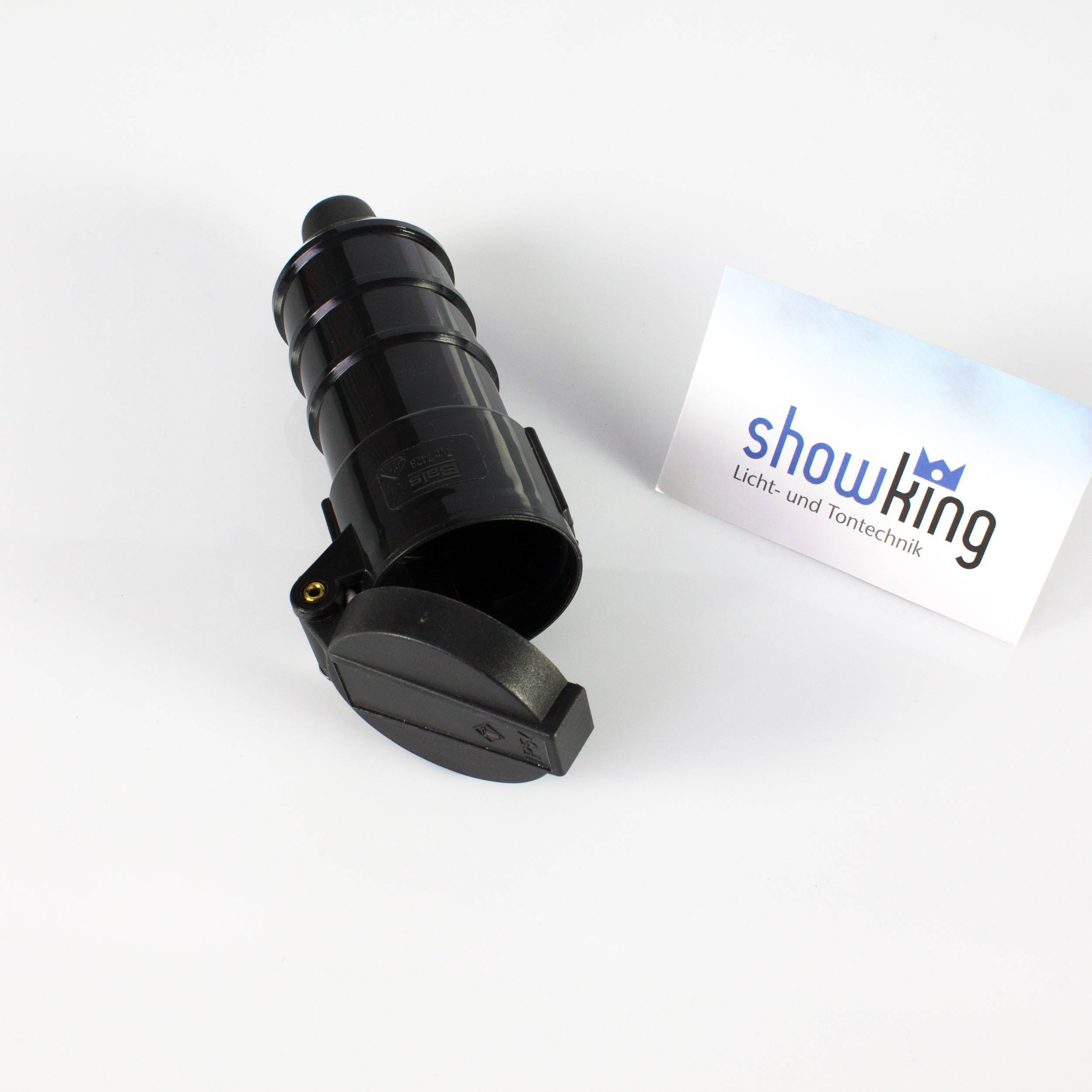 Stromkabelkupplung / Schutzkontakt mit Deckel, schlagfest, schwarz, IP54
