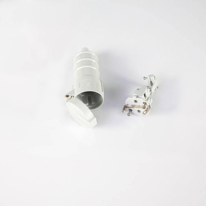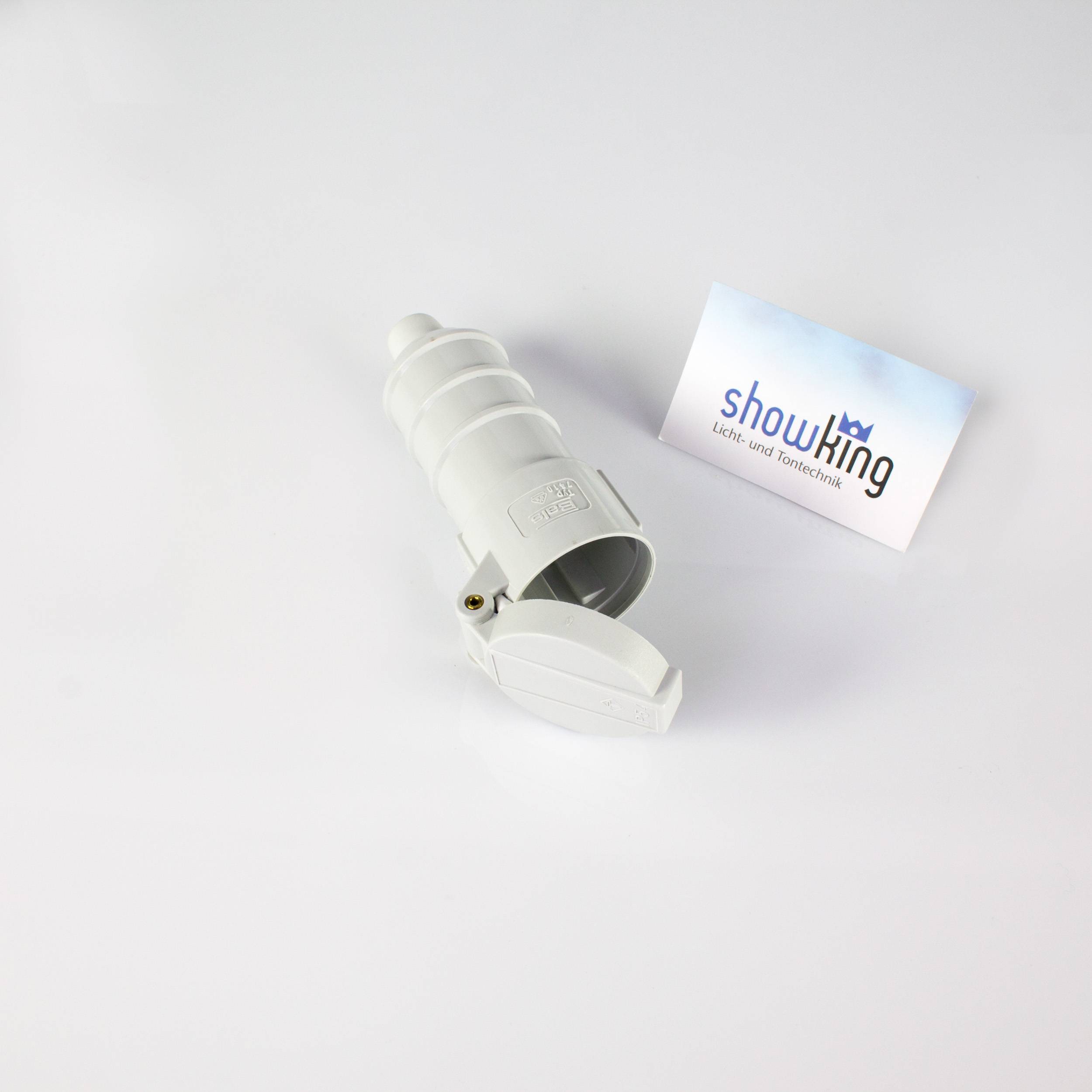 Stromkabelkupplung / Schutzkontakt mit Deckel, schlagfest, weiß, IP54