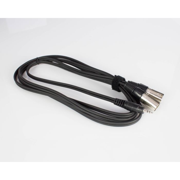 Adapterkabel das ein Stereo-Signal in zwei Mono-Signale aufsplittet. Das Audiokabel hat einen 3,5mm Klinkenstecker und zwei 3-polige XLR Stecker.