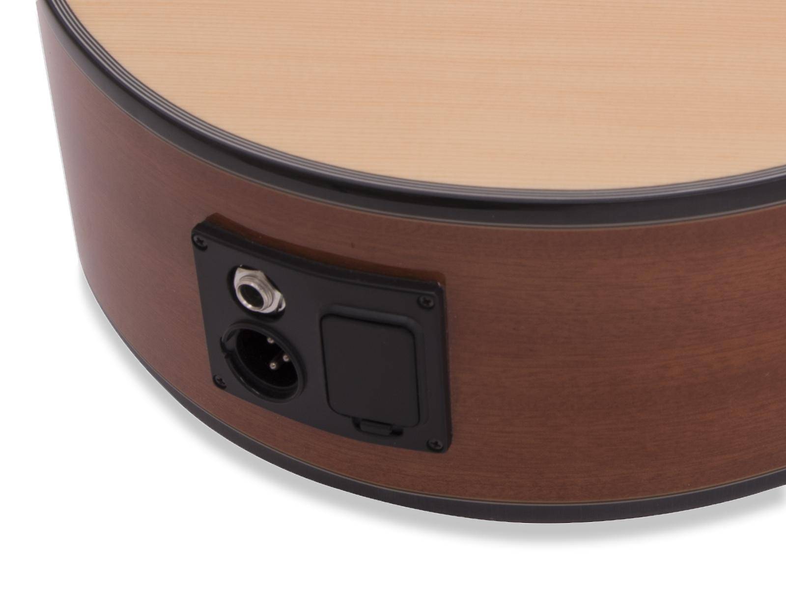 - Korpus aus Sapele, Brücke und Griffbrett mit 21 Bünden aus stabilem Palisander, Hals aus edlem Nato, Decke aus Fichte