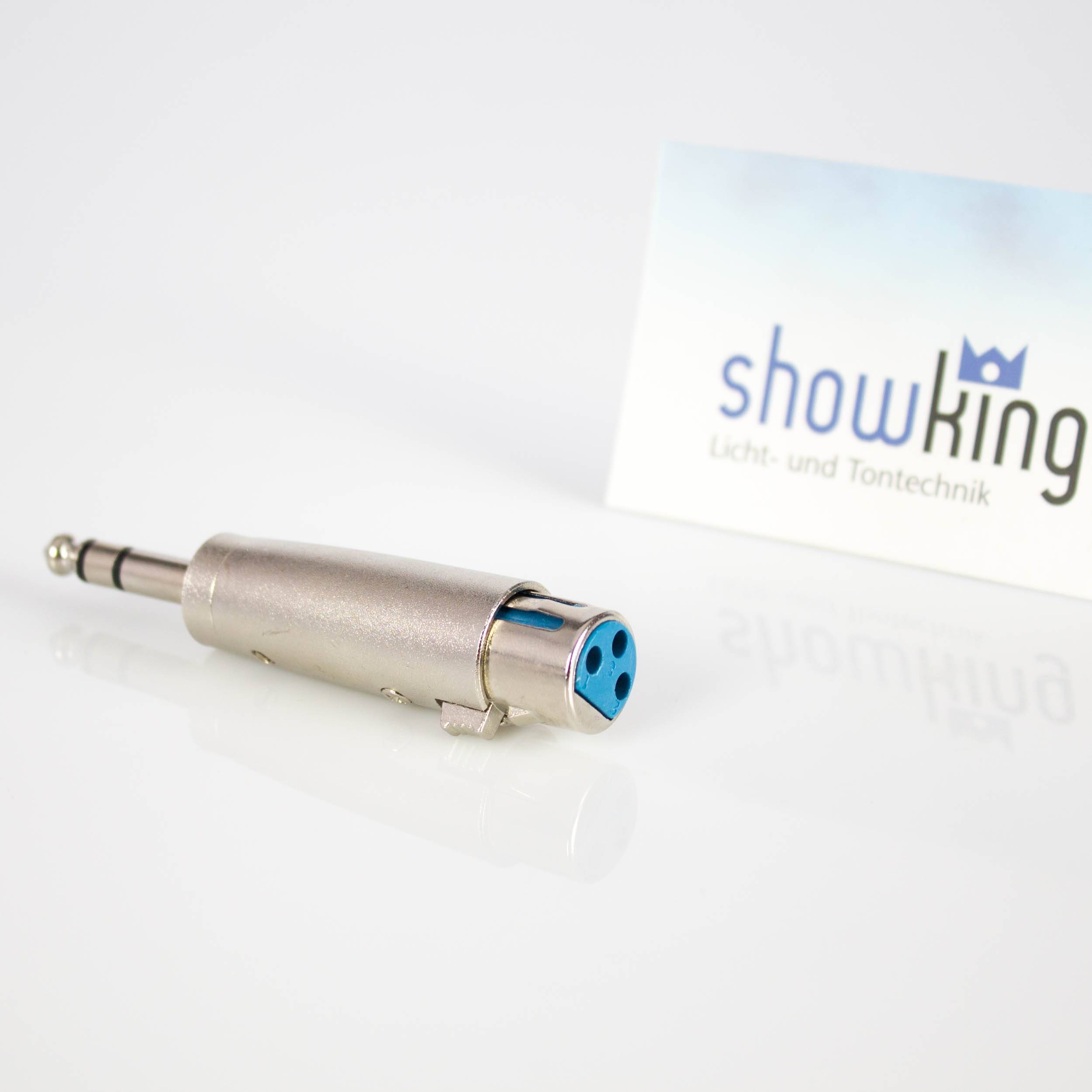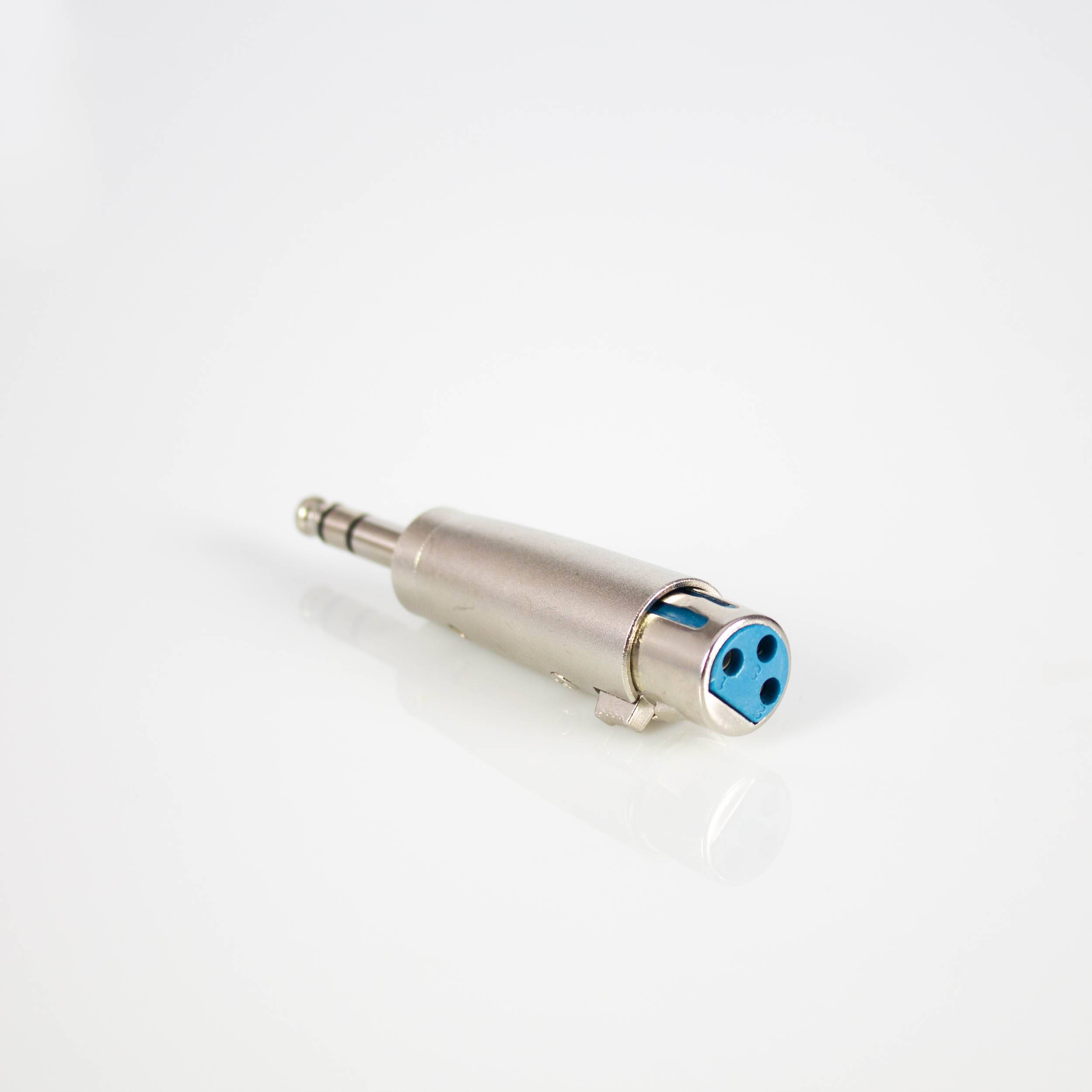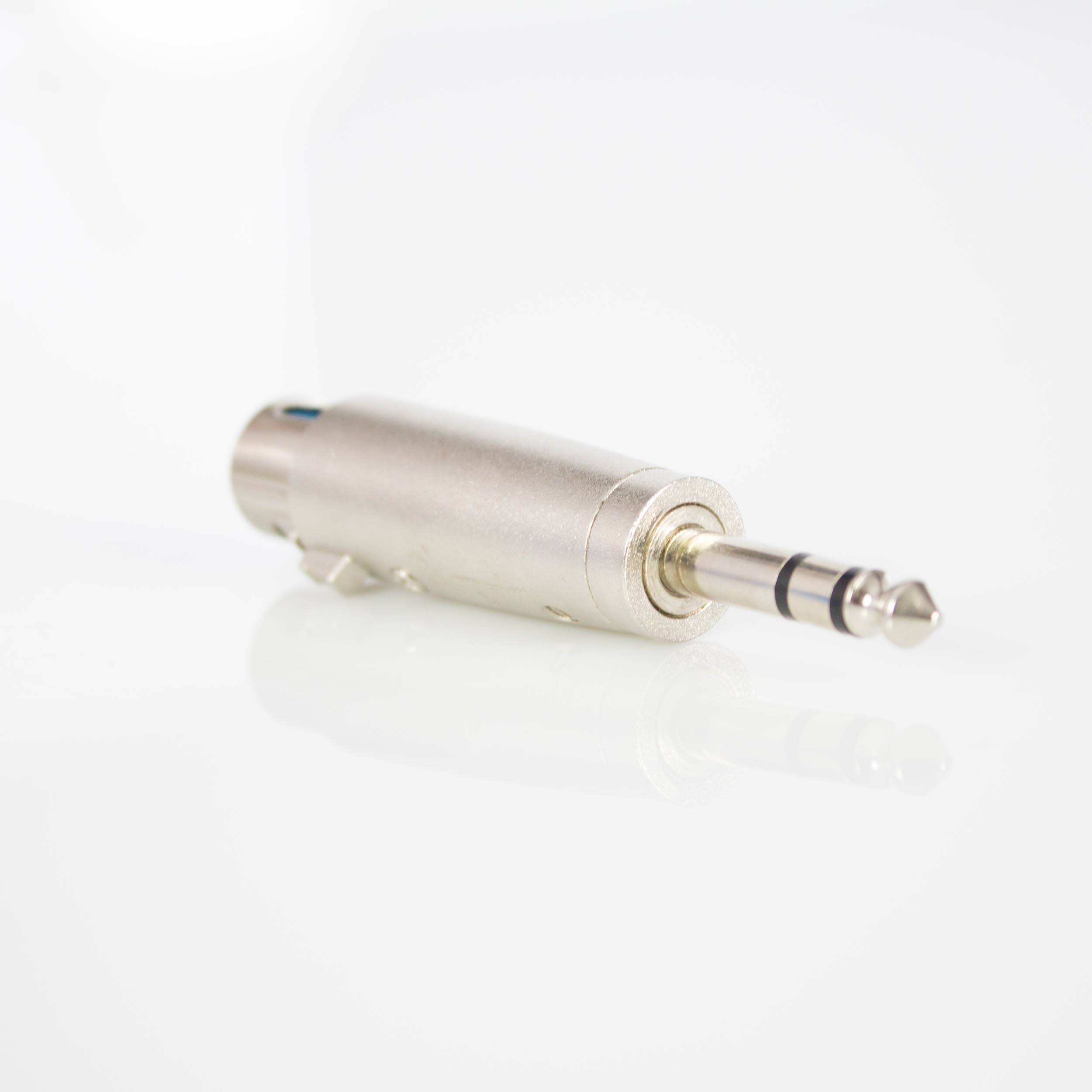 Adapterstecker für die Verbindung von XLR-Anschluss mit Klinkenanschluss. Kommt beispielsweise bei der Verbindung verschiedener Audiogeräte von PA-Anlagen zum Einsatz.