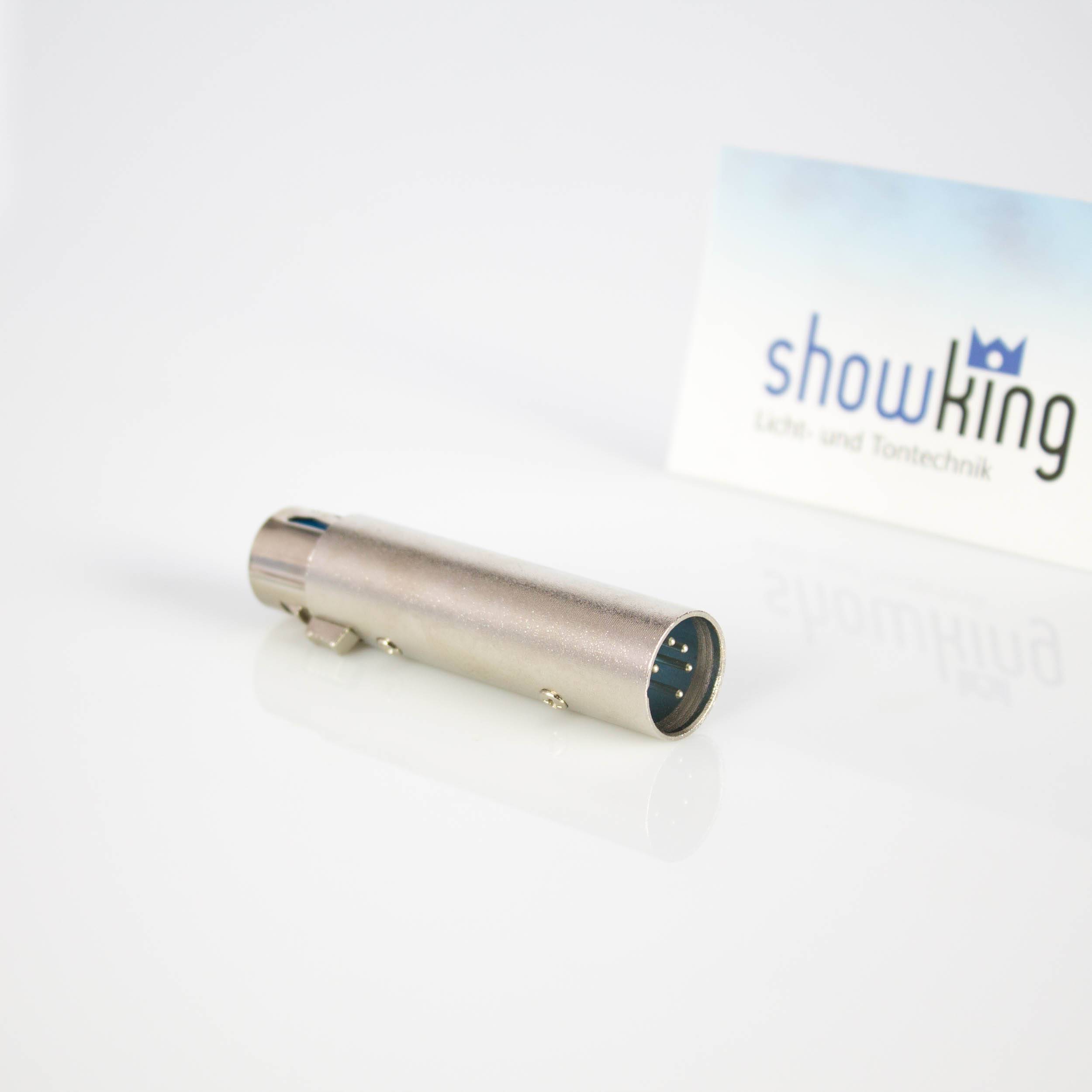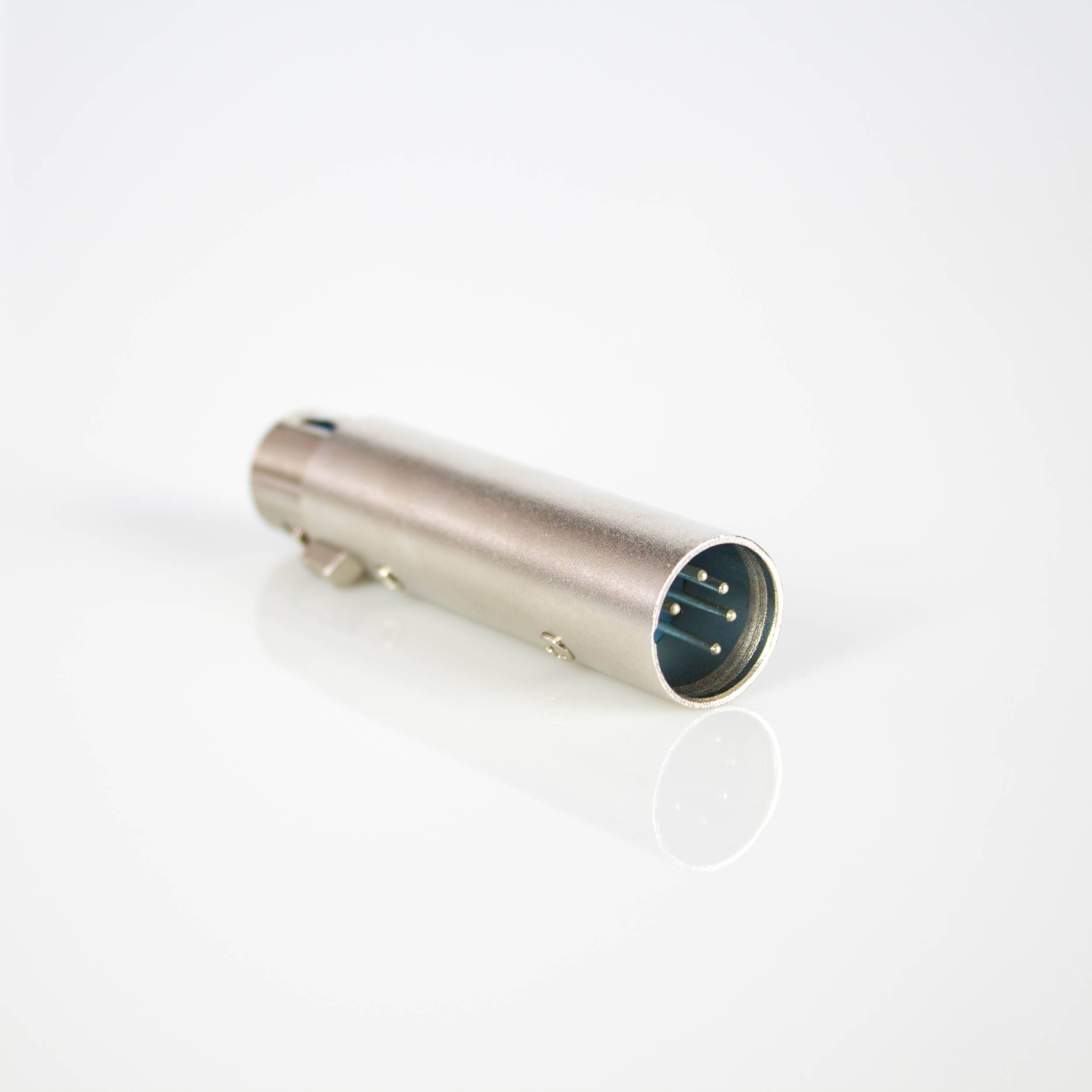 Adapter für XLR-Kabel von 3-polig auf 5-polig. Wird beispielsweise für DMX Anwendungen eingesetzt.