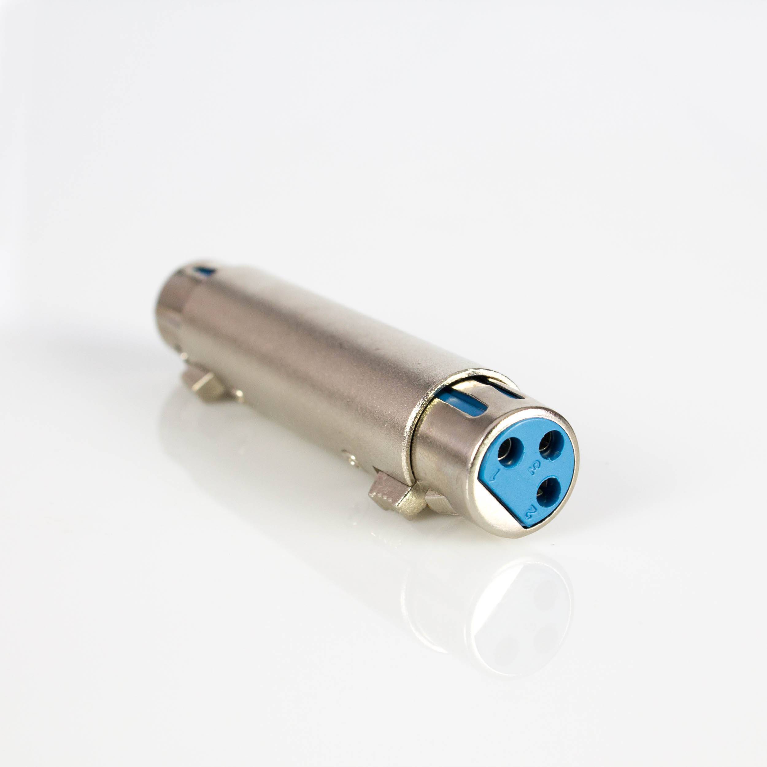 Adaper für die Verbindung 3-poliger XLR Kabel. Beispielsweise für die Verlängerung von drei poligen XLR Kabeln, die zur übertragung analoger Audiosignale verwendet werden.
